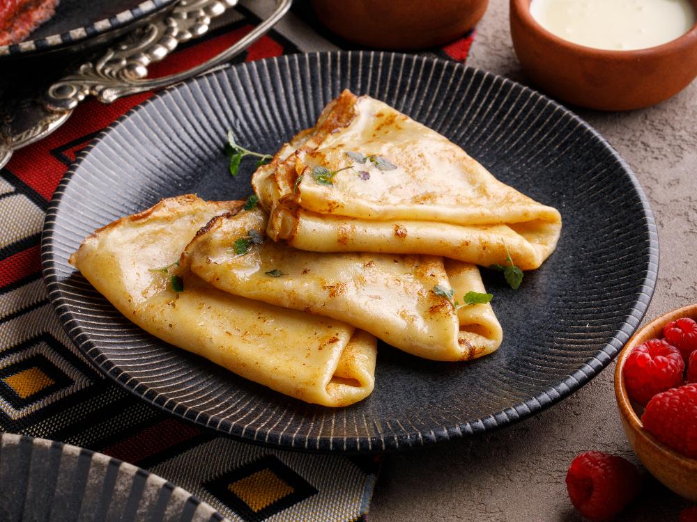 Ароматные румяные блинчики - идеальное сочетание с любым соусом по вашему вкусу (ванильный соус, вишневый соус, сгущеное молоко