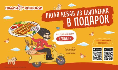 Акция ПхалиХинкали Колпино! Люля кебаб из цыпленка в подарок по промокоду "КЕБАБ26" - при заказе доставки от 2700р на сайте или в приложении. Не суммируется с другими акциями и промокодами.