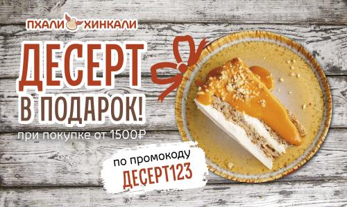 Десерт в подарок по промокоду при заказе от 1500р доставки или самовывоза на сайте или в приложении ПхалиХинкали Колпино.