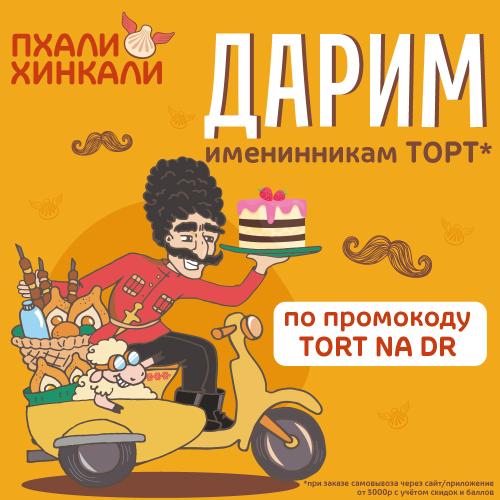 Дарим сливочно-вишнёвый торт имениннику на самовывоз по промокоду! При заказе от 3000р на нашем сайте. Для того, чтобы получить подарок - необходимо на сайте в корзине поле для промокода ввести промокод "TORT NA DR " и сделать заказ от 3000 рублей с учётом бонусов. Акция действует 7 дней до и 7 дней после даты рождения.