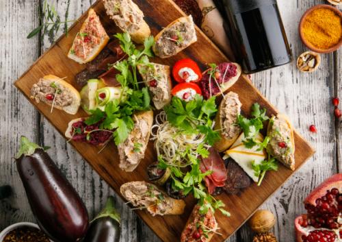 Традиционная закуска из овощей и грецкого ореха - с баклажаном, свёклой, болгарским перцем, грибами и зёрнами граната