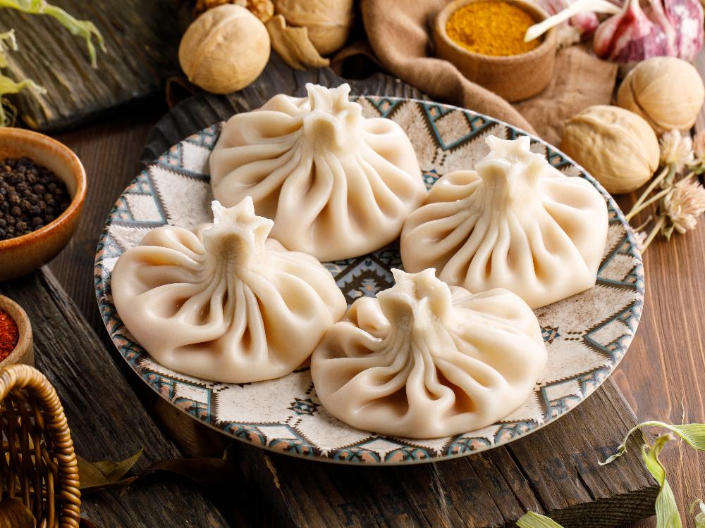 Хинкали с нежной начинкой из сыра, помидоров и сливочного соуса.