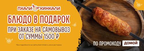 При заказе самовывоза по промокоду ДОМОЙ блюдо в подарок от суммы 1500р (с учётом скидок и баллов).