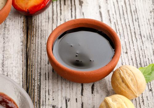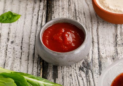 Соус из красной алычи с добавлением перца чили и чеснока.