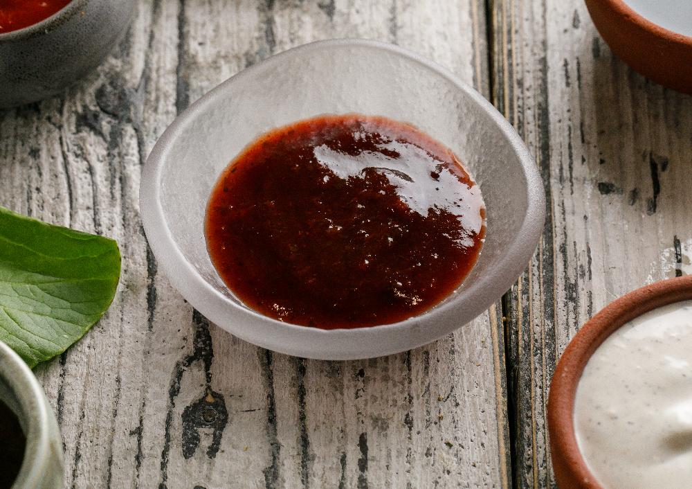 Соус из красной алычи с добавлением перца чили и чеснока.