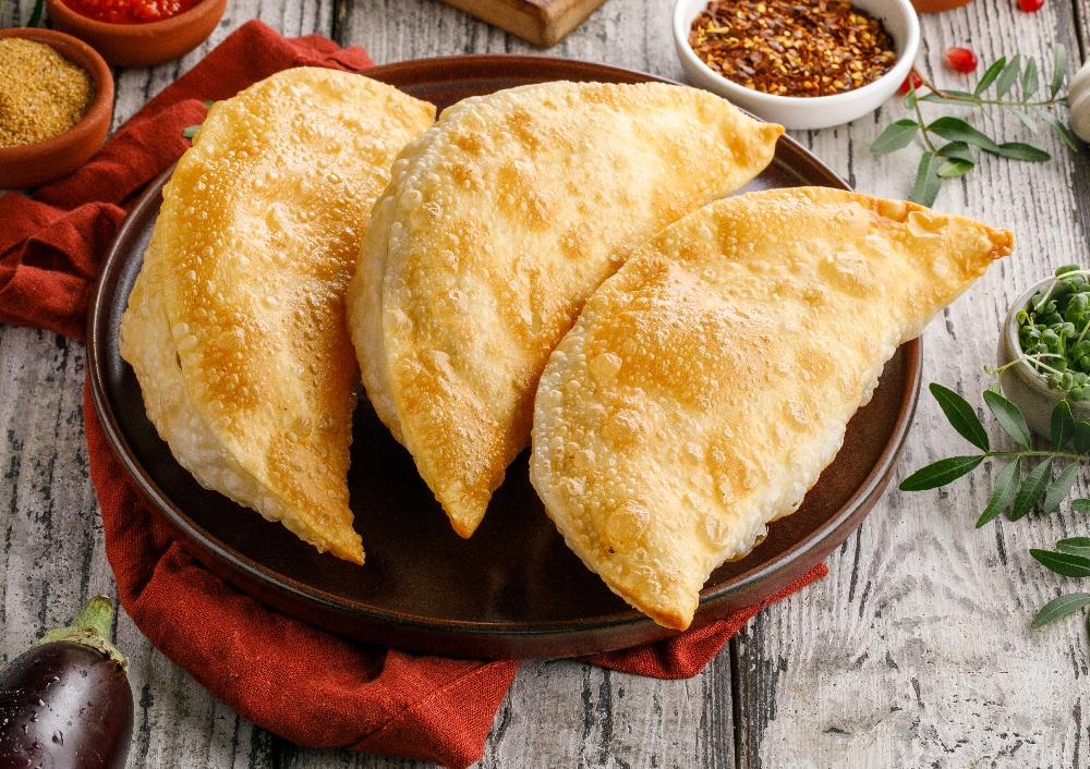 Воздушное, нежное тесто с пряным фаршем из свинины с говядиной с добавлением лука и специй.