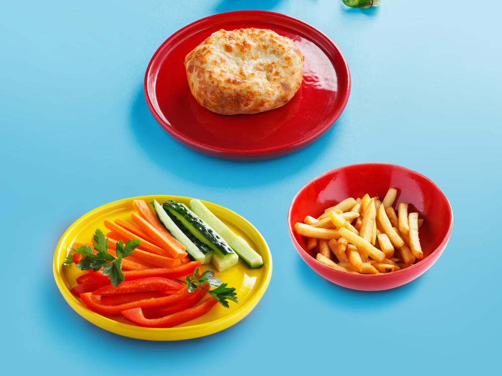 Овощные палочки, Картофель Фри, Детский хачапургер, кетчуп.