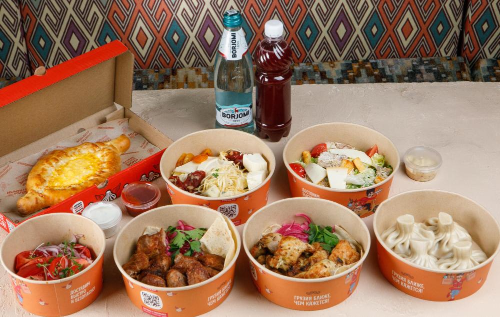 Выгодный ужин на двоих. Состав: 4шт хинкали говядина-свинина, Ассорти грузинских сыров – 2шт, Салат с помидорами и красным луком – 1шт, Цезарь по-восточному – 1шт, Хачапури по-аджарски – 1шт, Шашлык из куриного бедра – 1шт, Шашлык из свинины – 1шт, Мацони с зеленью – 1шт, Соус Сацебели,.