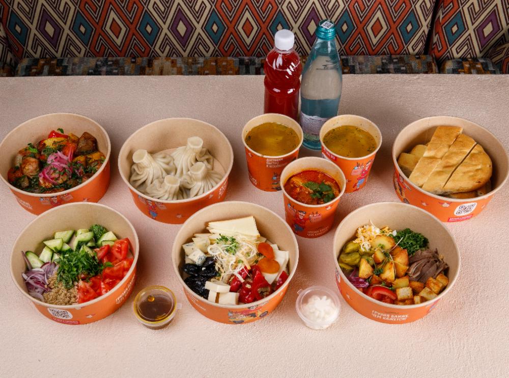 Идеальный набор на двоих на обед. Состав: 4шт хинкали с говядиной-свининой, Ассорти грузинских сыров – 2шт, Салат грузинский со специями – 1шт, Куриный бульон с пшеничной лапшой – 2шт, Оджахури со свининой – 1шт, Чахохбили с цыпленком – 1шт, Грузинская лепешка – 2шт.