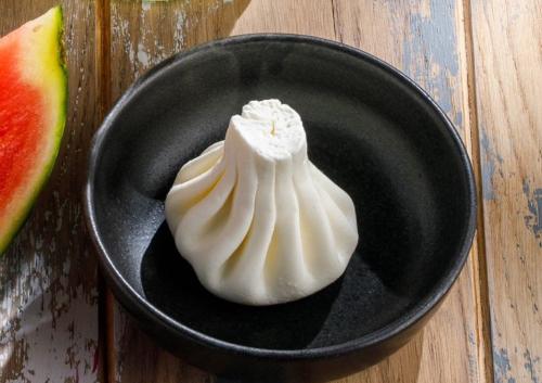 Нежная сливочная панна котта в форме хинкали с бархатистой текстурой и чистым молочным вкусом.